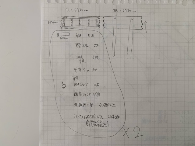 ということで、再利用もできる単管パイプを組み立てて作ることにしました!