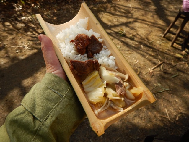 お皿もコップも箸も、その辺に生えている竹を利用。