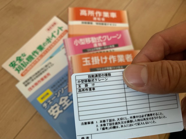 小型クレーン講習を最初に受けて、